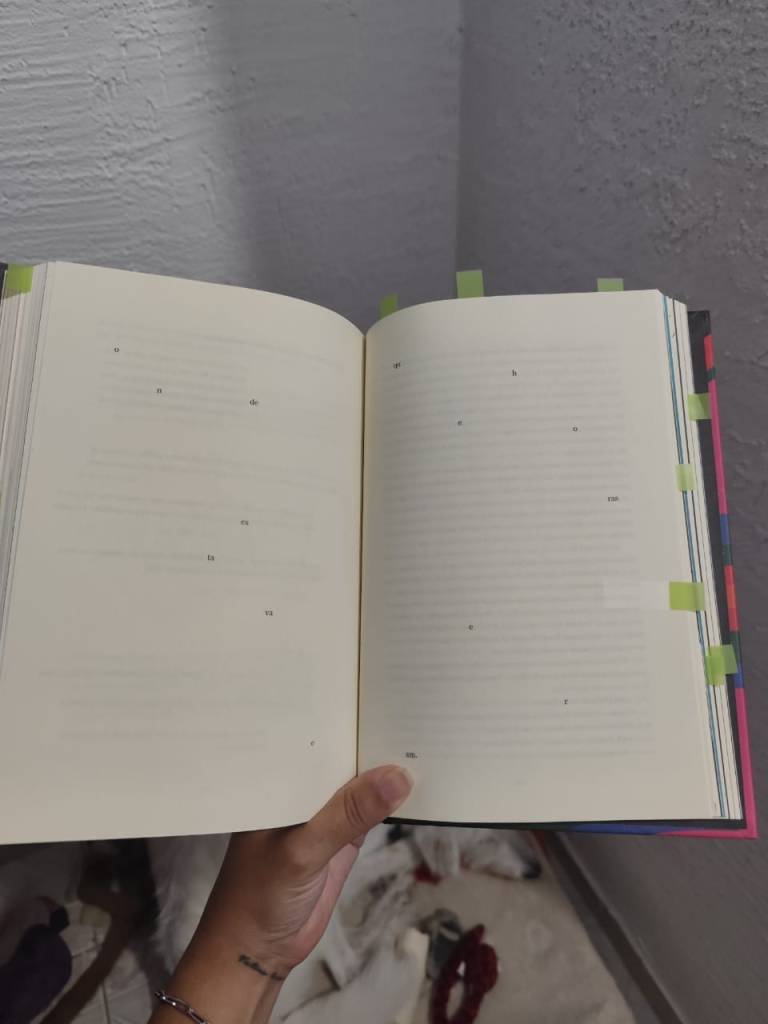 Outro ponto que afetou a minha experiência de leitura foi a edição da Antofágica. Conhecida por suas propostas gráficas ousadas, a editora, neste caso, acabou “revolucionando demais”: a diagramação moderna, em alguns momentos, mais atrapalha do que ajuda, interrompendo o fluxo natural da leitura.